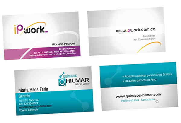 Son plastificadas en mate por ambas caras; destacan de forma especial por su rigidez y su elegancia. Además son impresas a full color por ambas caras y en papel couché de 300 gr.